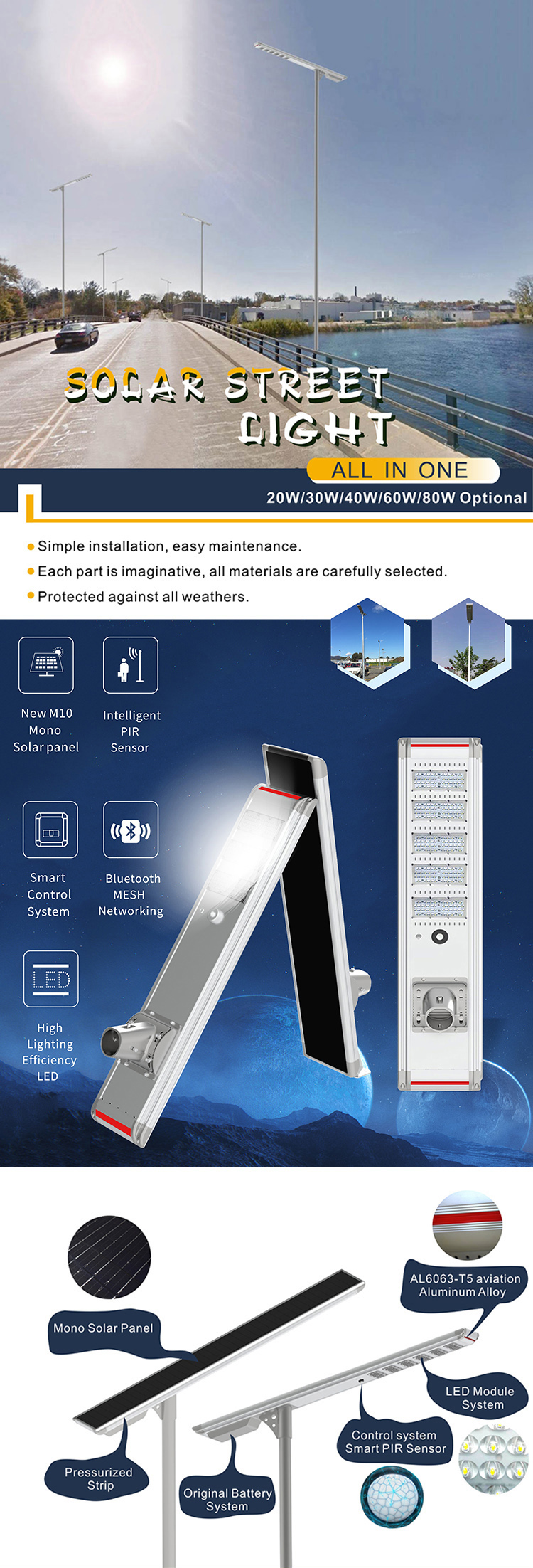 Nouveau design IP65 80 W lampadaire solaire à LED extérieur tout-en-un intégré lampadaire solaire à LED jardin autoroute